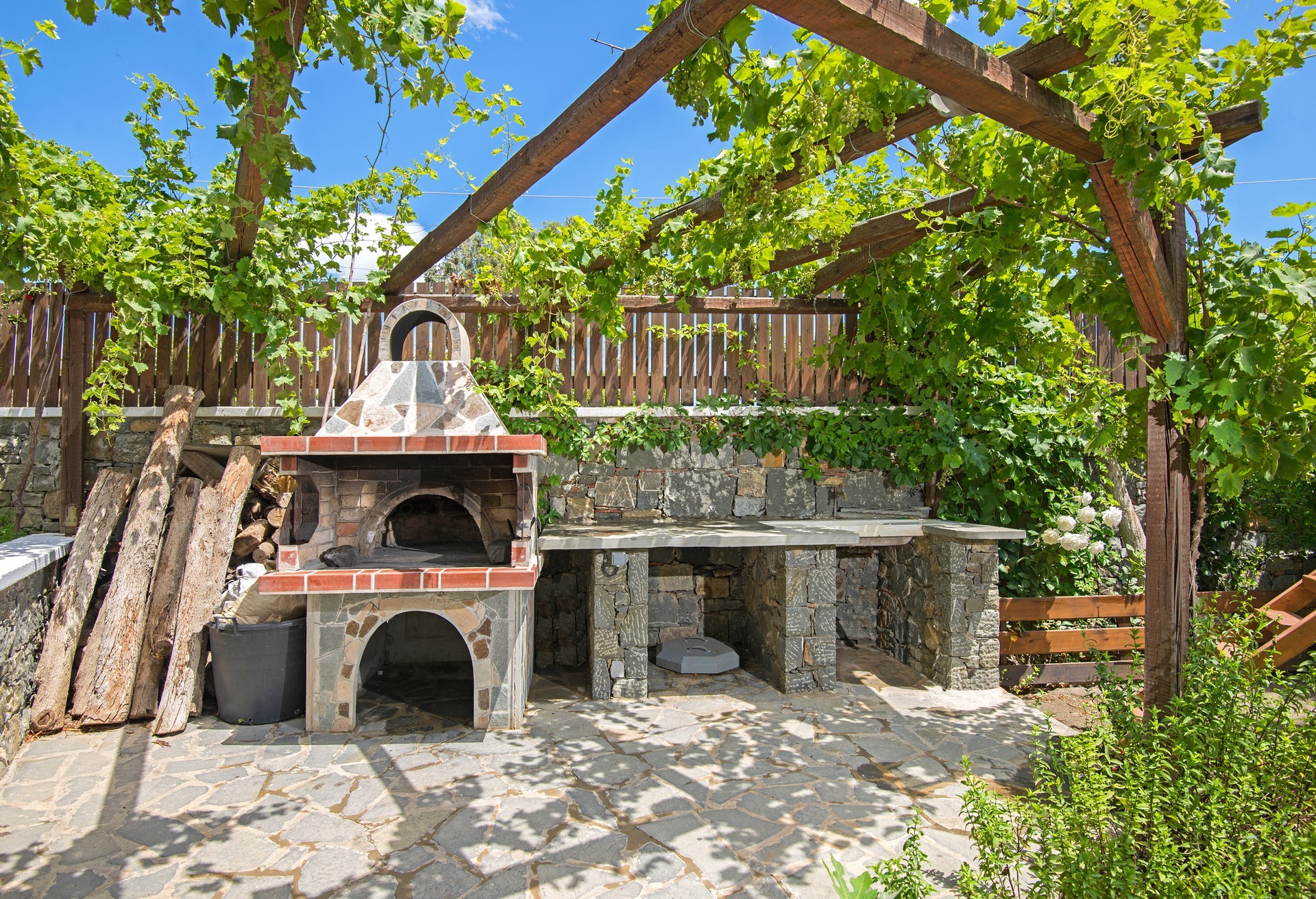 • terasz napágyakkal és napernyőkkel
