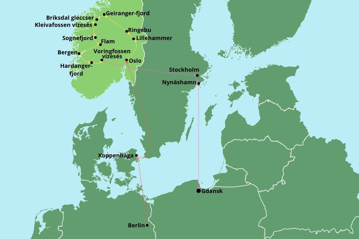 Délelőtt folytatjuk városnézésünket Koppenhágában: ellátogatunk az Amalienborg királyi palotához, megismerkedünk a város elegáns negyedeivel és különleges hangulatával, élvezzük a város kifinomult, mégis könnyed hangulatát. A nap hátralévő részében már Norvégia felé tartunk – az „északi fények, a fjordok és a fenyvesek országába”. Utunk a lenyűgöző Oresund hídon vezet át, amely Dániát és Svédországot köti össze, a tenger feletti monumentális hídon való átkelés az egyik legkülönlegesebb élmény az egész úton. Estére érkezünk meg Oslóba, ahol elfoglaljuk szállásunkat.